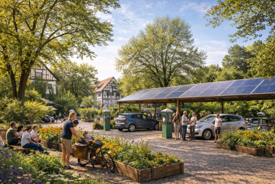 Unser Kommunalwahlprogramm 2026 ist umgesetzt. Rings um das Zentrum von Groß-Gerau finden Autofahrerinnen und Autofahrer mit ihren E-Fahrzeugen seit Langem ausreichend Lademöglichkeiten. Fast alle Parkplätze sind inzwischen mit Photovoltaik-Dächern überdacht. Diese liefern nicht nur emissionsfreien Sonnenstrom, sondern verschatten auch die Stellflächen und machen Klimaanlagen beim Starten überflüssig.