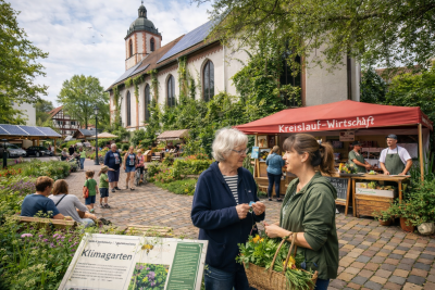Der „Platz der Schöpfung“ rund um die Stadtkirche ist kaum wiederzuerkennen. Engagierte Naturfreundinnen und -freunde haben mit Hacke und Herz auf kleinen städtischen Grünflächen und Brachen duftende Klimagärten mit informativen Hinweisschildern angelegt.