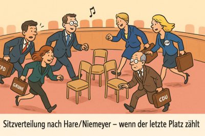 Wie erfolgt die Ermittlung der Sitze im Parlament der Kreisstadt Groß-Gerau (37 Sitze) und Magistrat (8 Sitze) nach dem Hare/Niemeyer-Verfahren? CDU und SPD hatten in der Vergangenheit versucht, mit dem d’Hondt-Verfahren eine für größere Parteien günstigere gesetzliche Grundlage zur Mandatsverteilung zu etablieren. Dieses Verfahren benachteiligte kleinere Parteien systematisch. Der Hessische Staatsgerichtshof hat heute, am 29. Januar 2026, diese Regelung für unzulässig erklärt.
